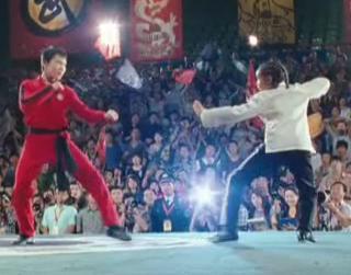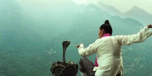 The training is well paced and varied enough to allow the other parts of the movie progress. Anyone who has seen the first movie knows the routine, but it is varied in that instead of the iconic “wax on / wax off” scene, we have him working with his jacket and a coat rack. There is a beautiful pair of scenes, one in the Wudang Mountains involving Michelle Yeoh in an uncredited appearance with a King Cobra, and the customary, but also beautiful scene at the Great Wall of China.