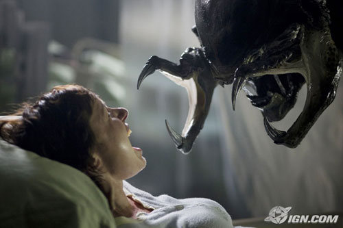 Synopsis – So, after the chestburster jumps out of the Predator in AvP, somehow it grows to fighting pro status (called a Predalien) while the Predator ship is still in Earth’s orbit, beats up the Predator pilot, and forces the ship down somewhere in Colorado. Next thing you know, it escapes along with a bunch of other Alien facehuggers, taking out a dad, his son and some local bums. Hearing a distress signal for the ship that went down and a lone Predator goes to Earth to clean up. Havoc ensues and many people die. In the end, Ms. Yutani lands herself a Predator blaster cannon.