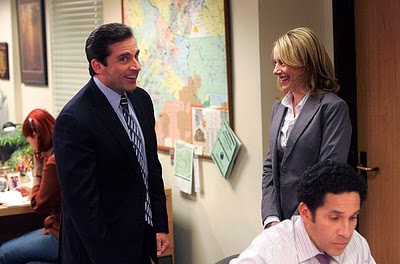 Season 4’s last is one of the best episodes of the year, perhaps in the history of the show. Kevin and Holly is classic. Ryan’s fate is classic. Phyllis v. Angela is classic with a great twist ending. Holly and Michael is one of the bedrocks of the show. Jim and Pam…nice the way it turned out. Dwight’s hazing is perfect. And Andy…poor Andy. All in all, there is only one minor drawback…Jan. Seems a little much, especially after all that vasectomy talk.