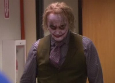 Andy: Yeah, good. Can we— [Dwight pulls out Cornell mascot bobble-head] Grr. Heh heh heh. That’s Big Red Bear! That’s a bobble Big Red Bear! God!! - The best moment – 3 Jokers for Halloween. Creed’s is best.