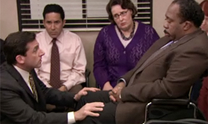 - A brief synopsis – Dwight’s attempt at Fire Safety education lands Stanley in the hospital with a heart attack. Subsequent attempt by Michael to be safety coördinator are similarly problematic. Andy is watching a pirated movie with Jim and Pam and thinks they are movie geniuses when they discuss their parent’s problems in front of him while the movie is playing. Michael then decides to have a roast to make everyone relax, and of course, the expected happens.