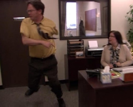 Dwight: It’s not the soil! It’s the manure! Paper is the manure! On-time delivery is the soil! Aah! [runs into office] - The best moment – Dwight’s spin move on Schofield’s secretary.