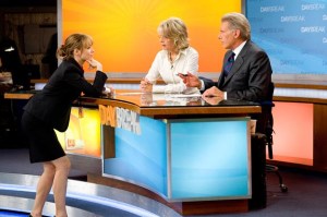 The story deals with a young morning show director (McAdams as Becky Fuller) who is fired from her moderately successful job and ends up at one that is in the absolute dregs. By hook and by crook, she ends up with a Dan Rather-esque former anchor who has been pushed out of the chair of honor and is living off of his giant contract. Of course Ford’s Mike Pomeroy, gruffly