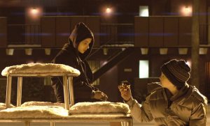 The acting in this film is absolutely critical and minimalist. It does not take much emoting to get across some very complex stuff, and Smit-McPhee and Moretz have shown their chops quite effectively in the two films I have seen them in (this one, The Road and Kick-Ass) so far. I think we may hear a lot from both in the future. Moretz replaces the odd joviality that you see in Kick Ass with a sad resignation required of the part. Although he was required to carry the fire as somewhat of a burden in The Road, Smit-McPhee’s Owen awkwardly does the same for Moretz here. Slowly does he realize not only what his new friend really is, but that he has a purpose, grim as it may be, in her life. Jenkins and Koteas are excellent in their portrayals as two men drawn by their fate to meet their end. One (Jenkins) is doomed by love, the other by duty. That they both chose this movie should be a great sign for those on the fence about a movie that could be construed as horror. It is not a horror film, although some of the concepts make one scream out internally like the picture The Scream. Horror flicks are guys with chainsaws, machetes and masks wreaking havoc on stupid teens. This is a film about a life of despair alone and solace in each other.
