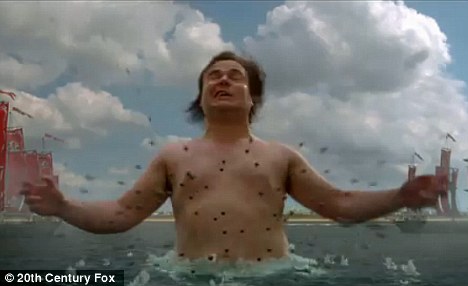 By the time Jack Black has vanquished his foe in a battle royal, the two little people armies decide to fight. The only reason for this I can estimate is because one side wears red and the other blue. One more thing to learn. Jack tears into a mighty small rendition of War. Small, that is, when you consider that backup vocals are provided by people who are the size of his fingers.
