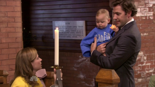 Dwight: Shh, shh, shh. - The best moment – Jim leaving the baby with Nana, who complains.