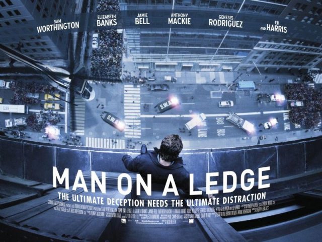 The trailer for Man on a Ledge made it look as bad as This Means War‘s trailer did. From it we find that Worthington, as Nick Cassidy, is an innocent man convicted of stealing a diamond from Ed Harris’ David Englander. Of course the jewel had never been stolen in the first place. Now, he is distracting the world by threatening to jump off of the building across the street from where the diamond is. As his brother Joey (Bell) and Joey’s girlfriend (Rodriguez) are working in that building to procure the item and, hence, prove Nick’s innocence.