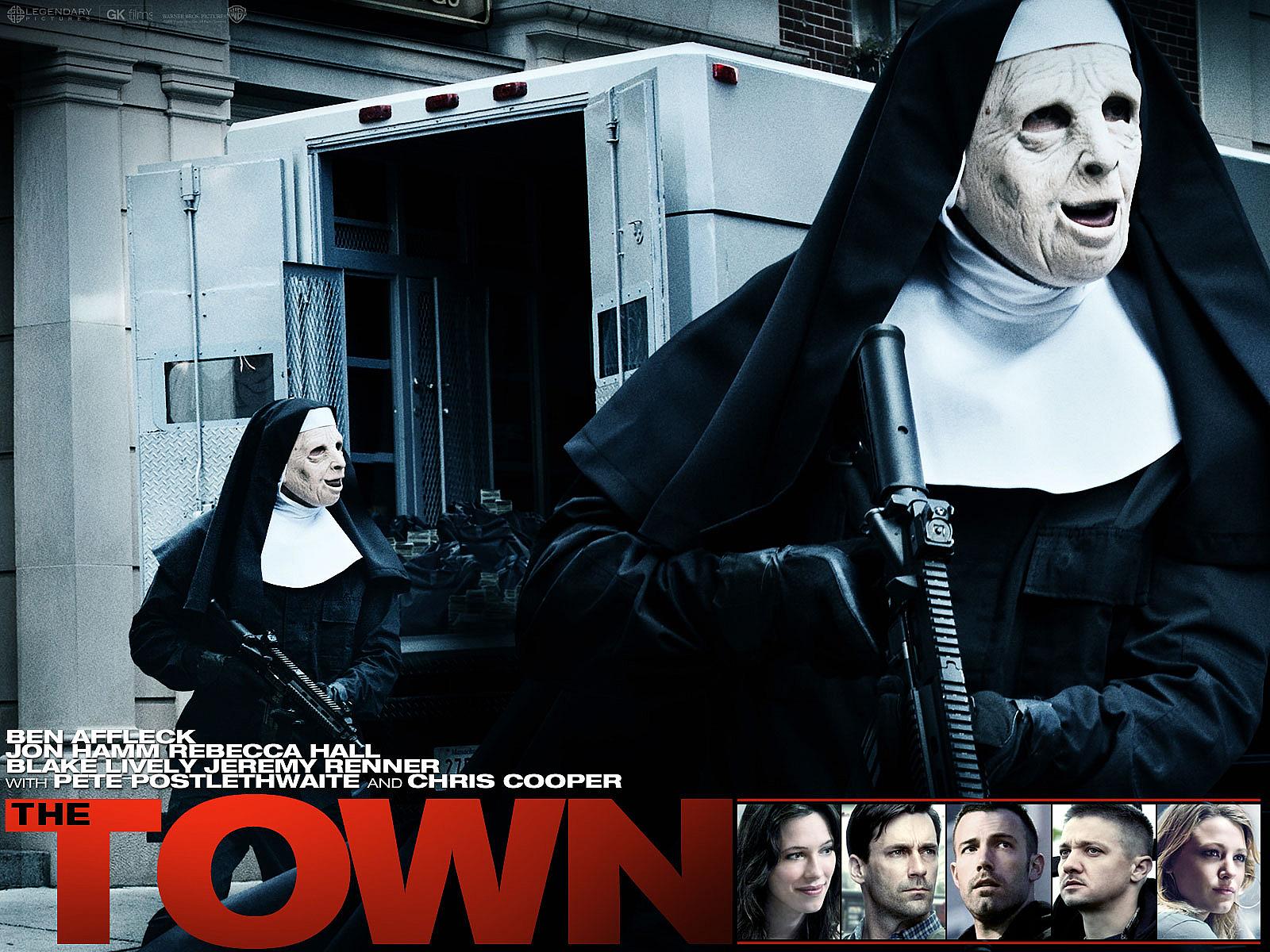 There’s a moment in The Town where the 4 bank robbers, all Charlestown natives, are leaving the “switch car” dressed as Nuns with masks on. Looking across the street, they see a police officer sitting in his stopped car, just staring. They look at him, ponder, and the officer, knowing what is in store, chooses to look the other way. The decision saves his life. It’s the most riveting moment in the film filled with moments intended to be riveting.