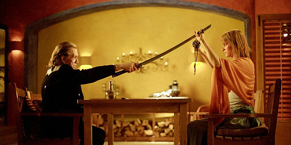 Favorite Scene I loved the training sequences, replete with the wild mustache stroking and embarrassment for Thurman’s Bride, Beatrix Kiddo. The best scene is the final showdown. It’s the subtle ending to a film that laughs at subtle.