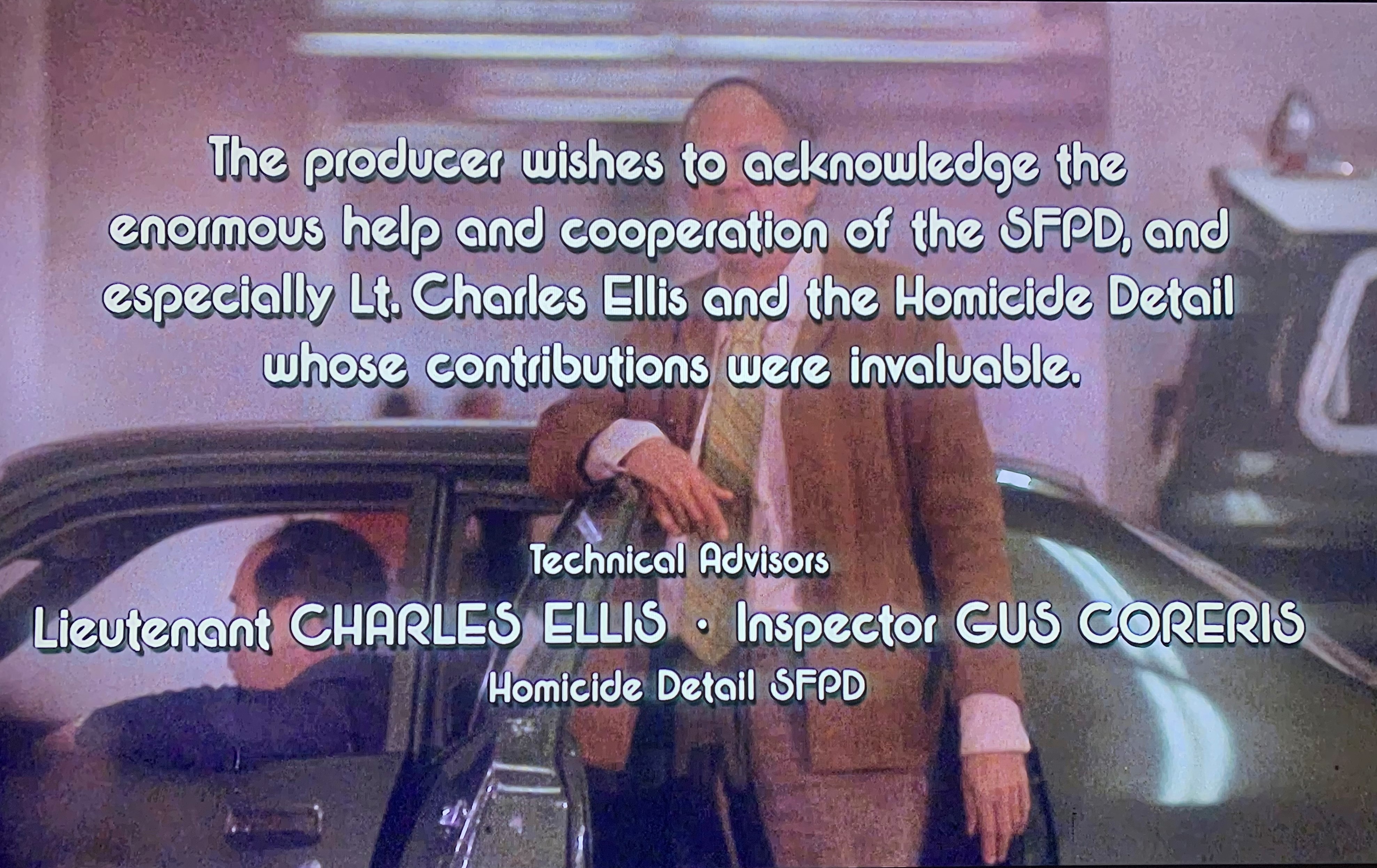 Even more shocking, the film gives credit to a couple of sources in regards the veracity of what we are seeing. It is to give the impression everything we see has been checked for accuracy by professional “Technical Advisors.” While this is a common practice today as it was in 1973, one finds hard to believe the givers of such assurance of authenticity would have viewed that first act and given any sort of free pass. In the era of the Zodiac, several films, including the original Dirty Harry, take the habit of resting their laurels on these experts (especially in the San Francisco area) to give a stamp of approval.